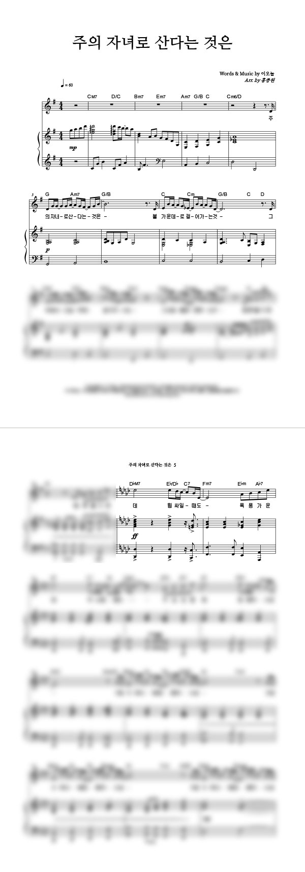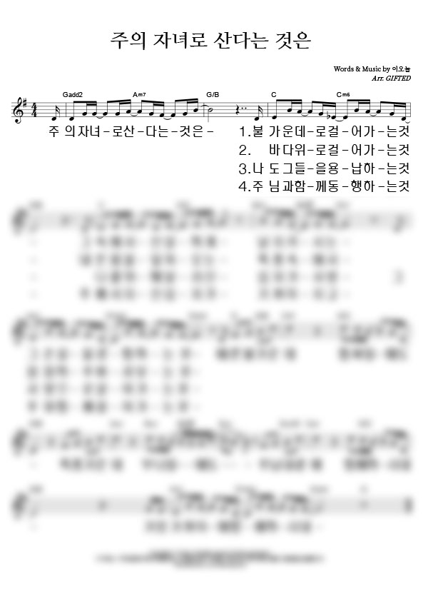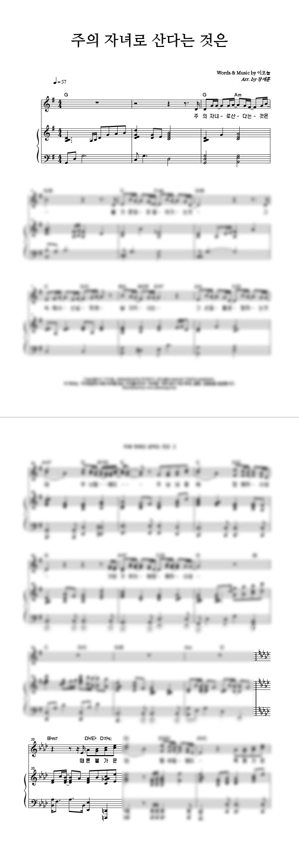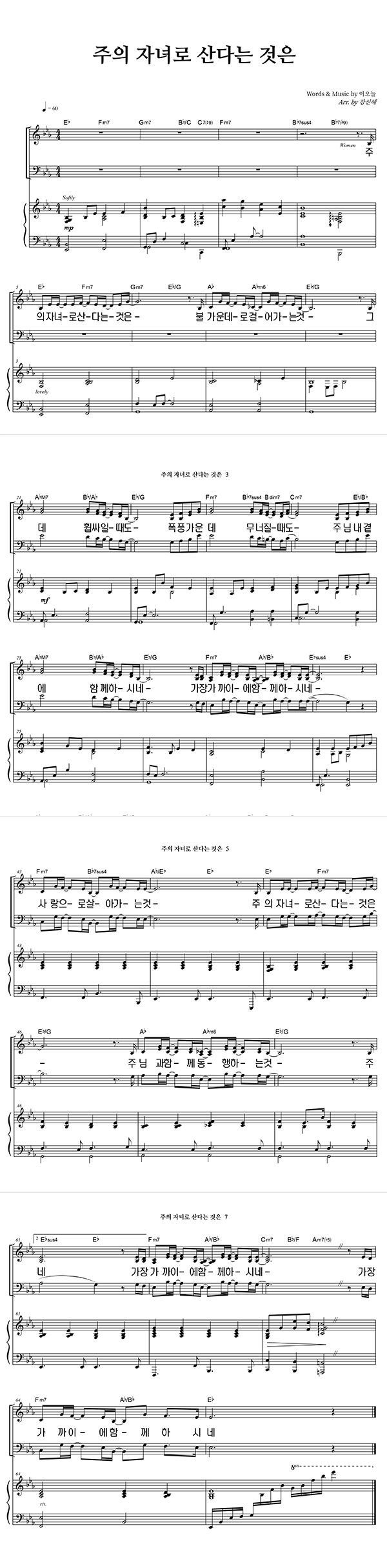 '주의 자녀로 산다는 것은' 의 다른 악보형식