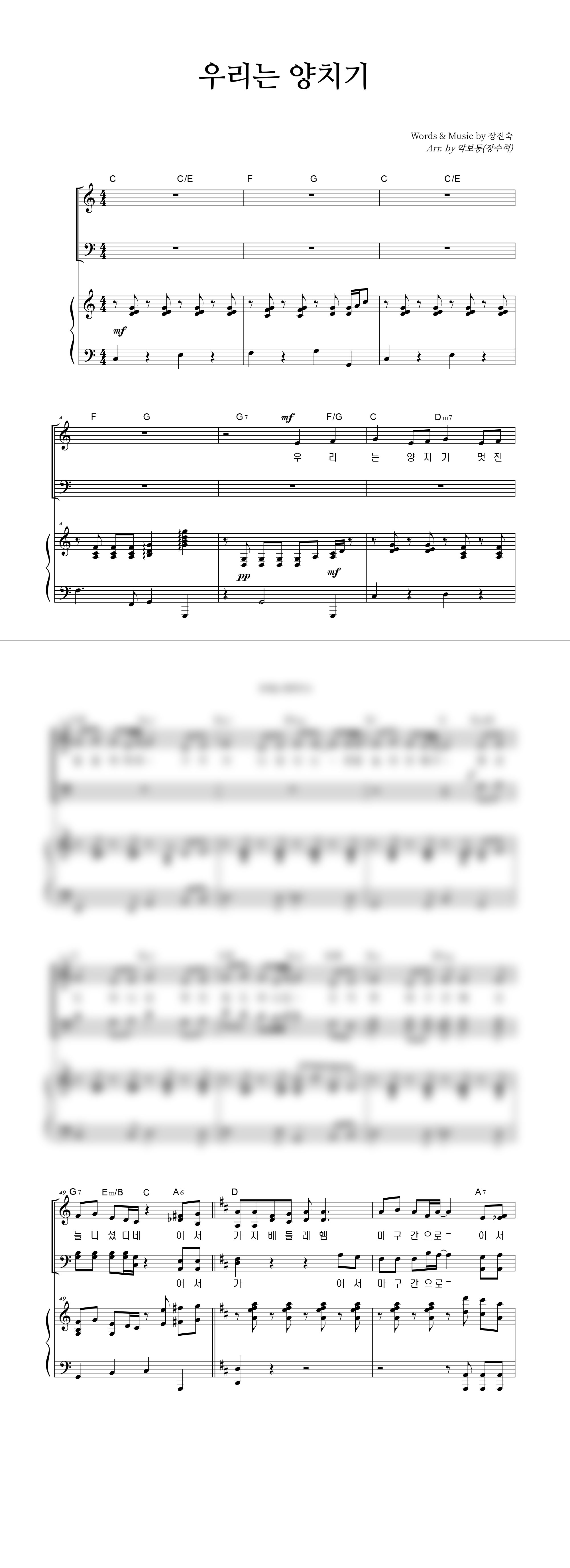 | 우리는 양치기 | 성가 4부 + 피아노 반주 |