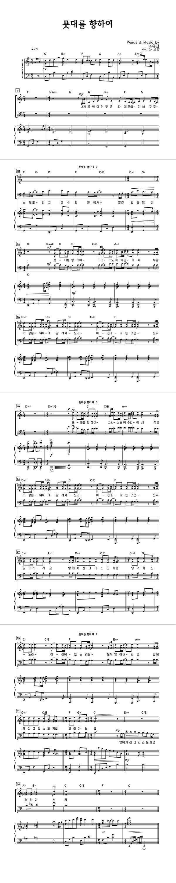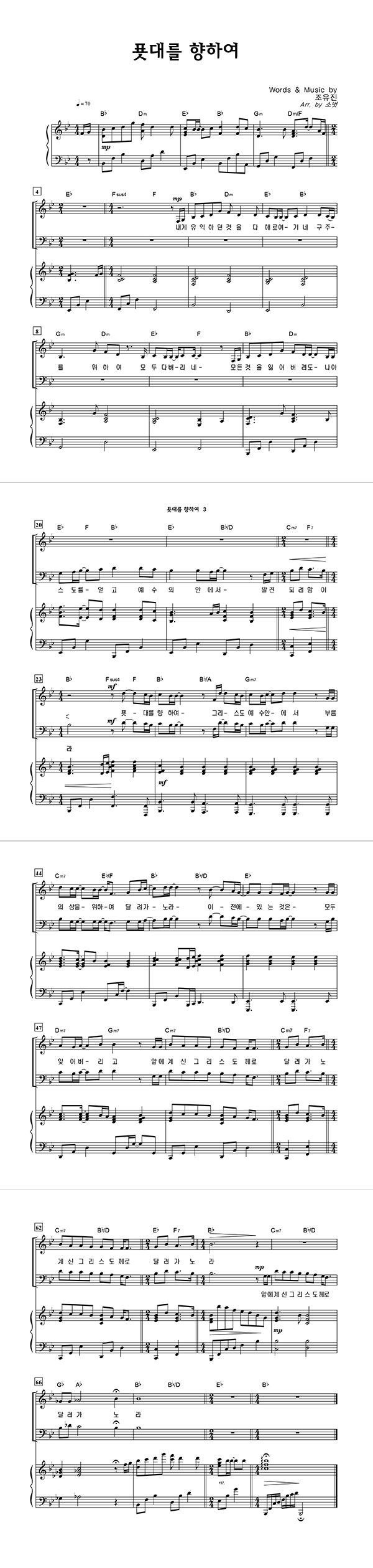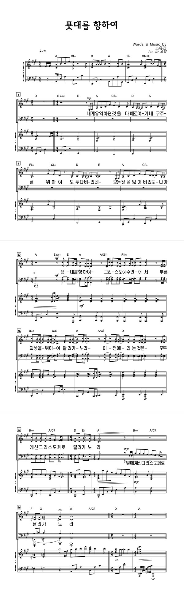 | 푯대를 향하여 | 성가 3부 + 피아노 반주 |