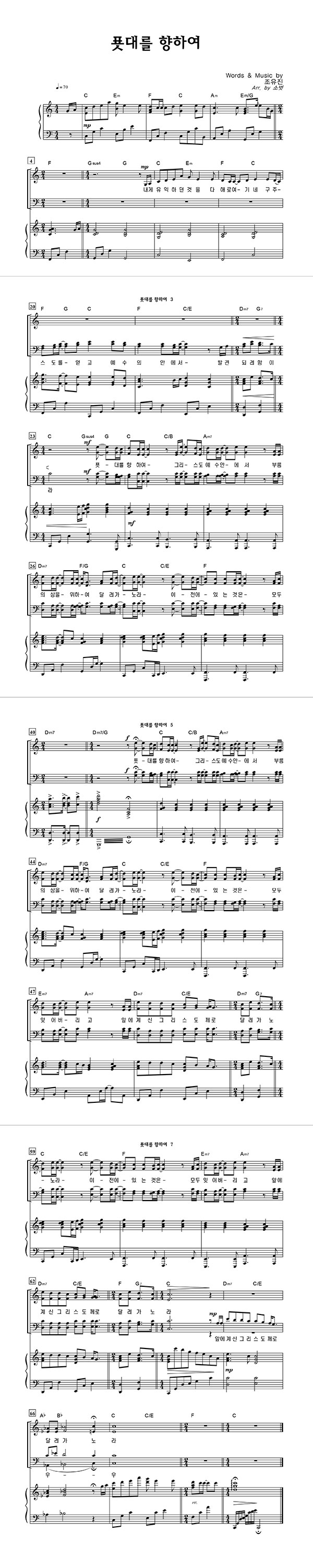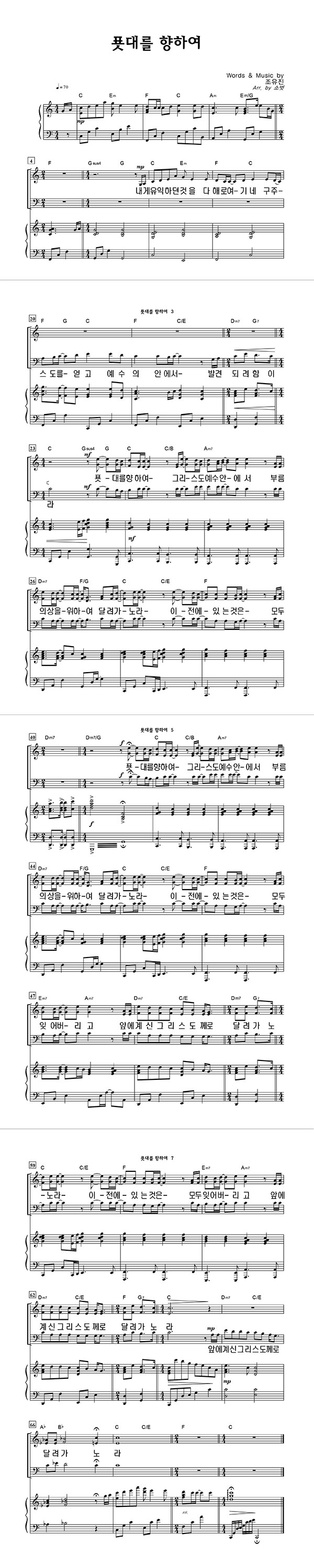 | 푯대를 향하여 | 성가 2부 + 피아노 반주 |