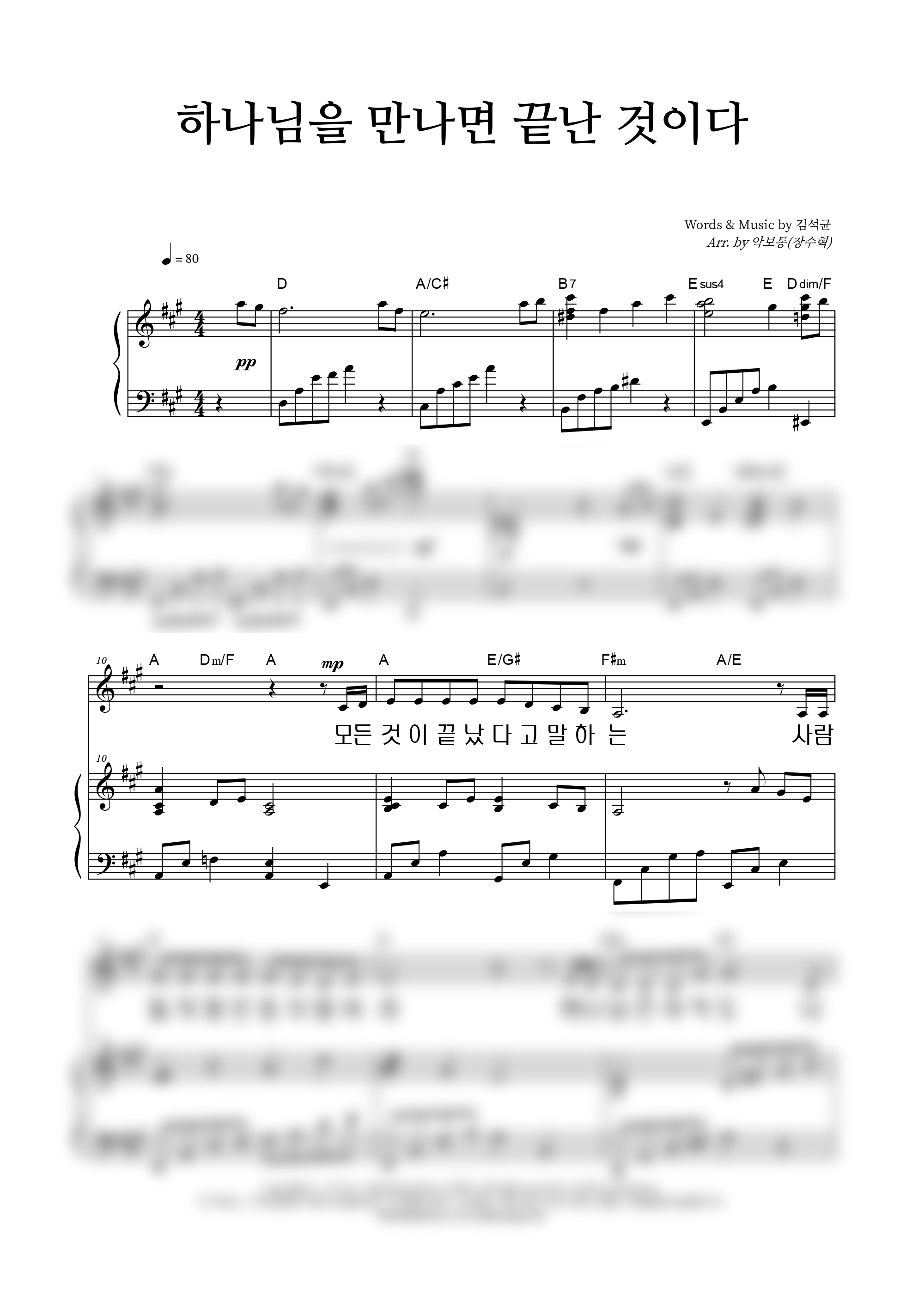 '하나님을 만나면 끝난 것이다' 의 다른 악보형식