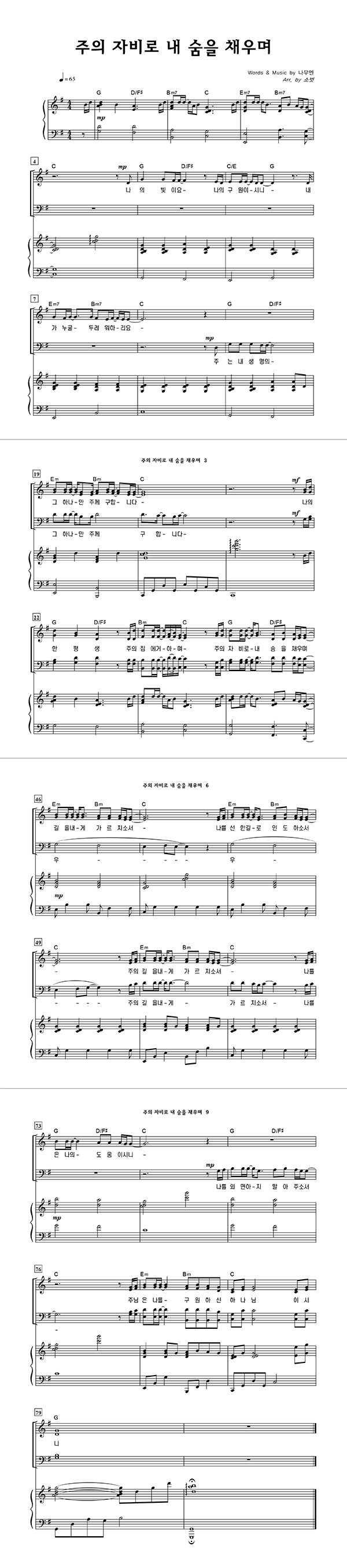 | 주의 자비로 내 숨을 채우며 | 성가 2부 + 피아노 반주 |