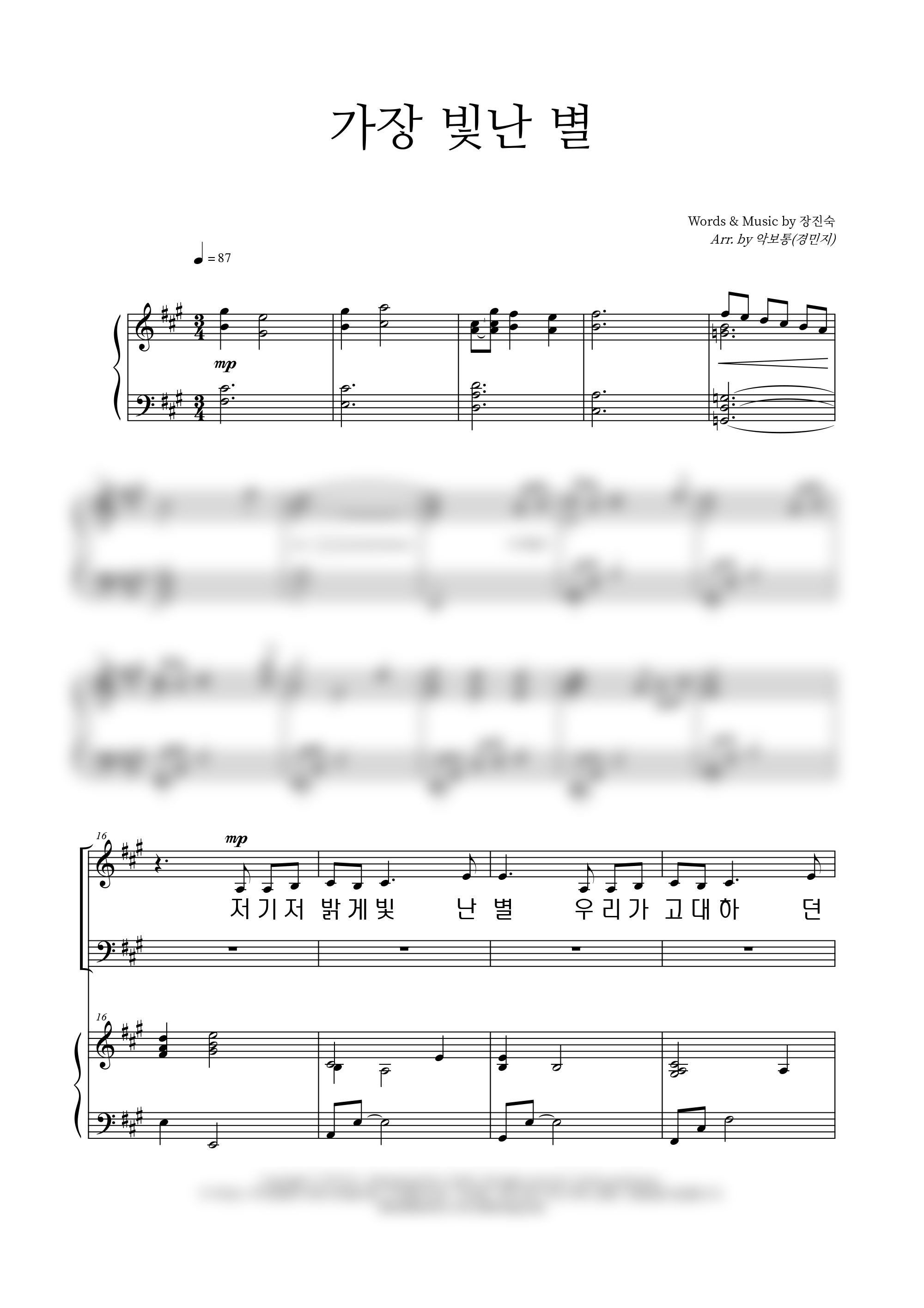 '가장 빛난 별' 의 다른 악보형식
