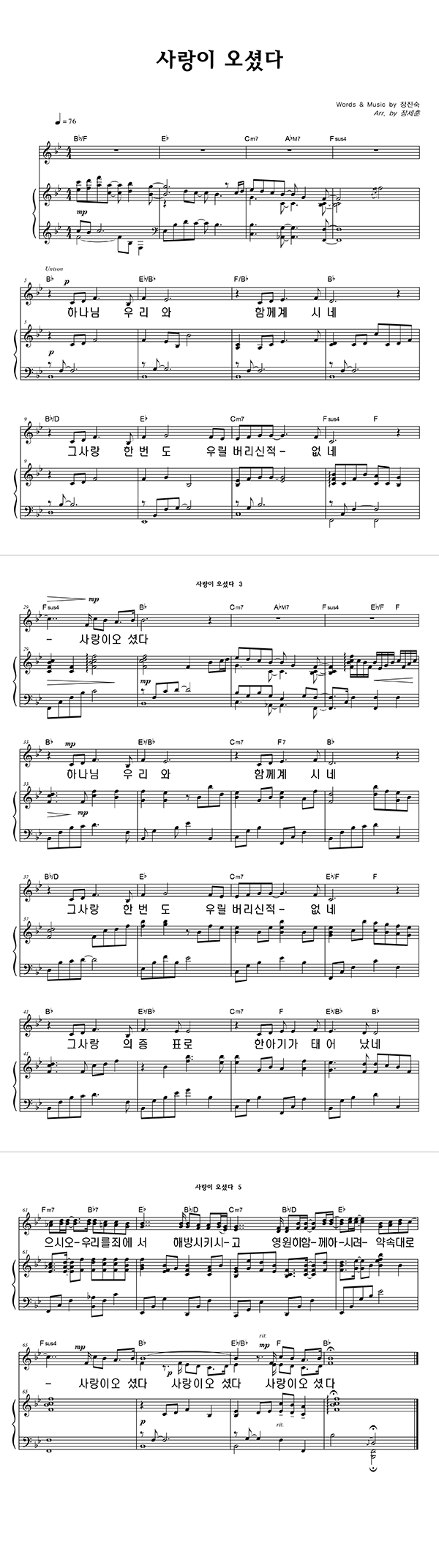 | 사랑이 오셨다 | 성가 3부 + 피아노 반주 |