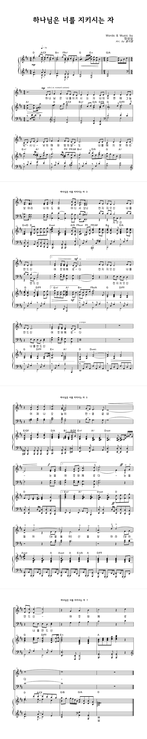 | 하나님은 너를 지키시는 자 | 성가 3부 + 피아노 반주 |