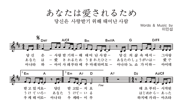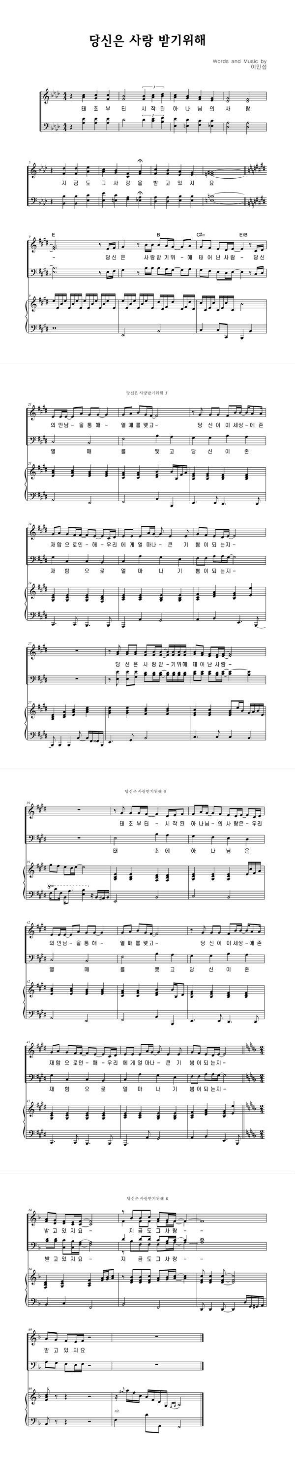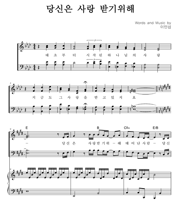 | 당신은 사랑 받기 위해 태어난 사람 | 성가 4부 + 피아노 반주 |