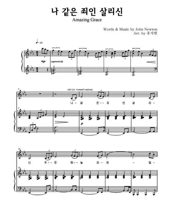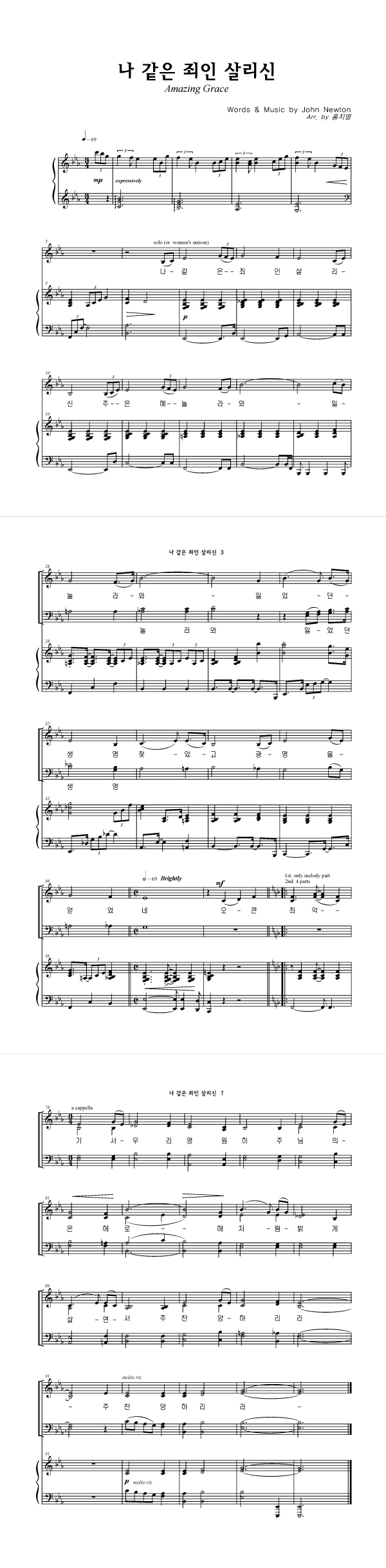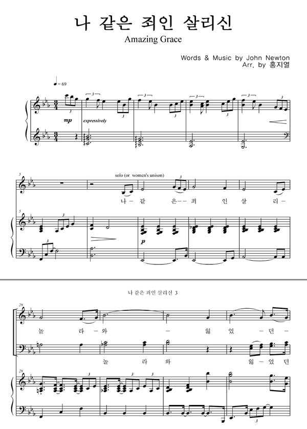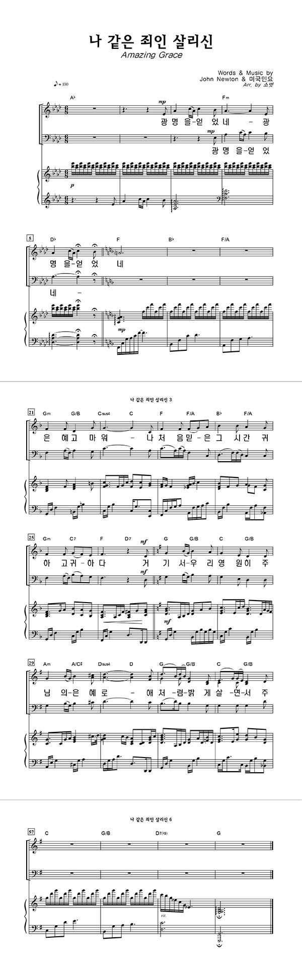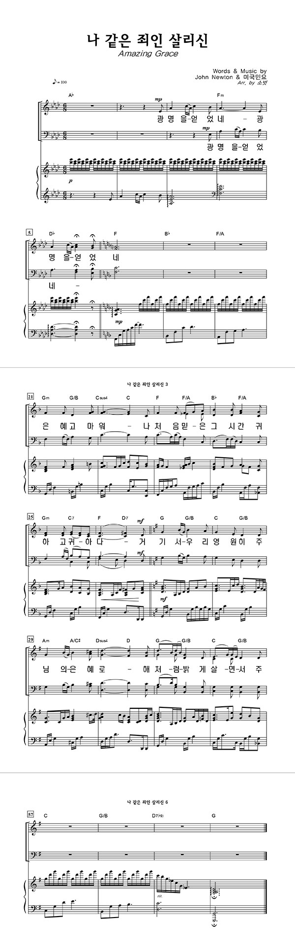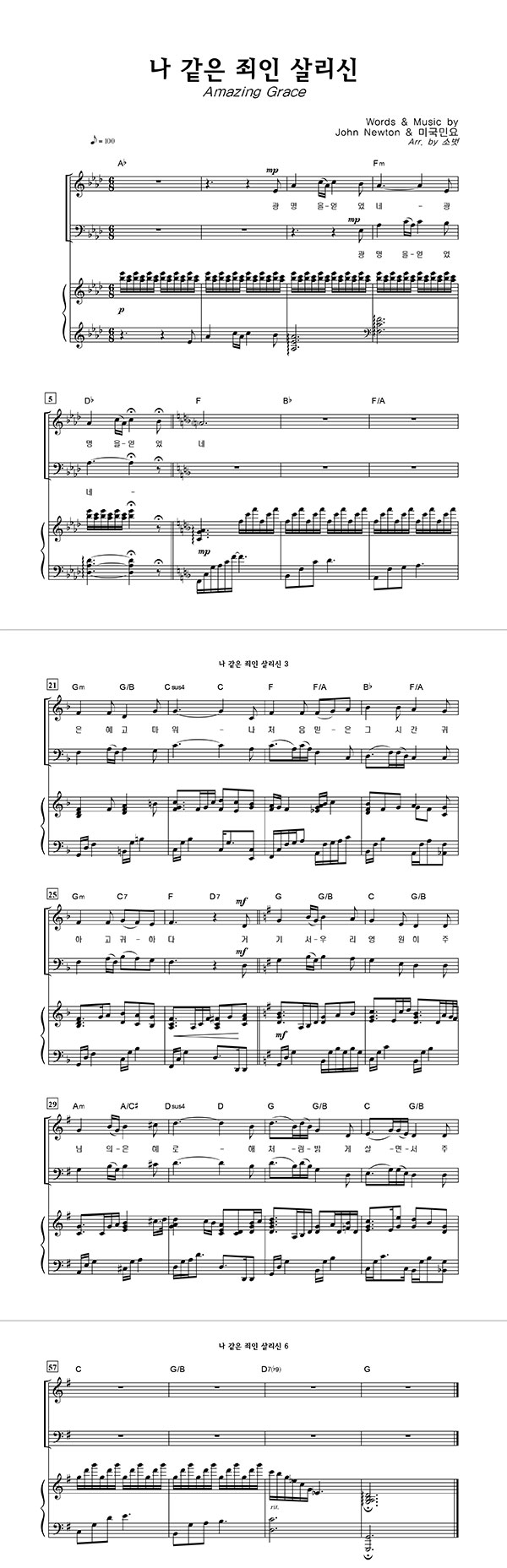 | 나 같은 죄인 살리신 (찬송가 305장) | 성가 3부 + 피아노 반주 |