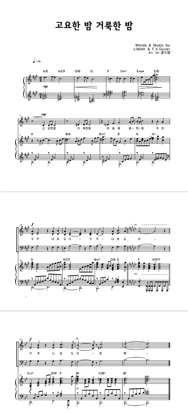 | 고요한 밤 거룩한 밤 (찬송가 109장) | 성가 4부 + 피아노 반주 |