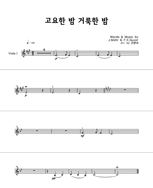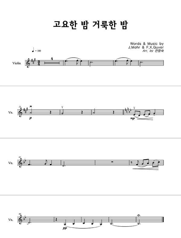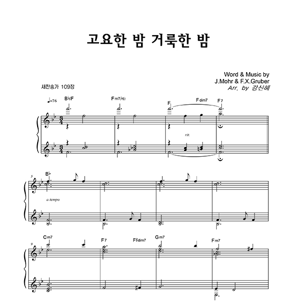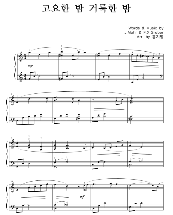 '고요한 밤 거룩한 밤 (찬송가 109장)' 의 다른 악보형식