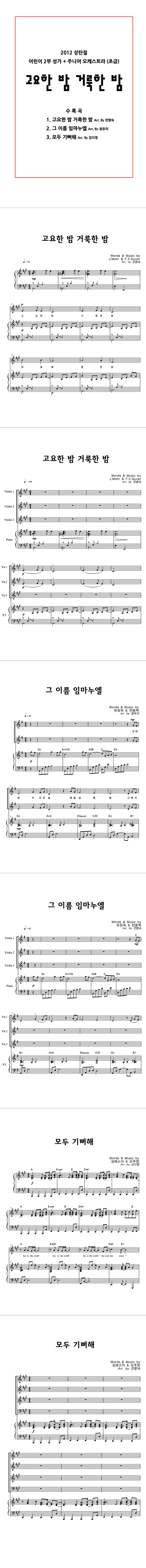 | [성탄절칸타타주니어오케스트라] 고요한밤거룩한밤 | 성가 2부 + 피아노 반주 |