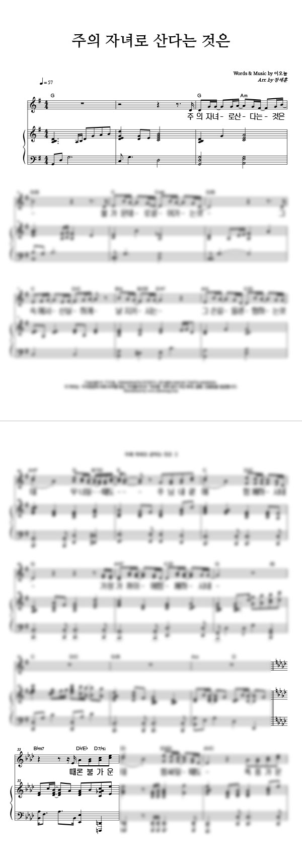'주의 자녀로 산다는 것은' 의 다른 악보형식