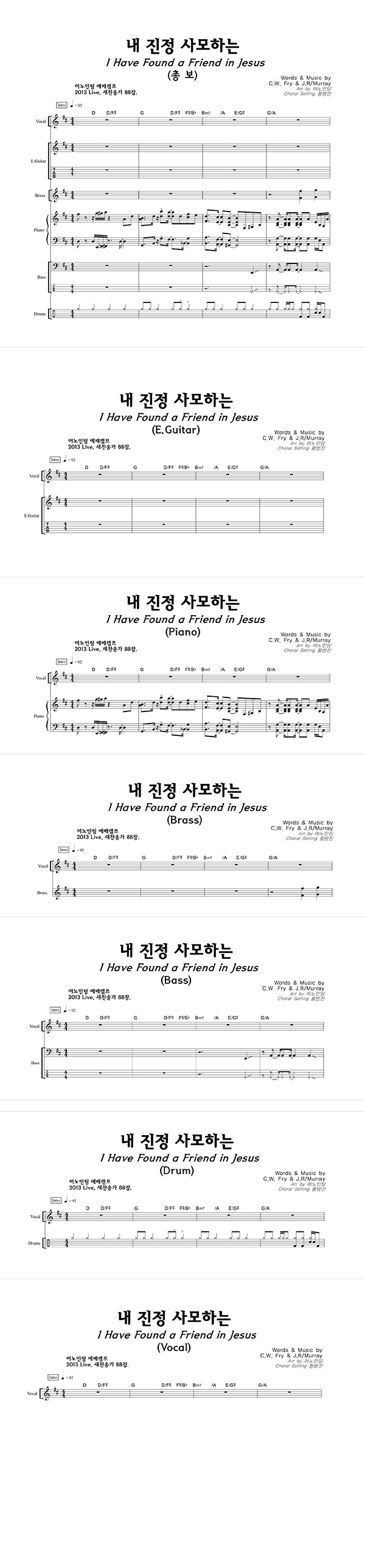 | 모두 찬양해 | 성가 2부 + 피아노 반주 |