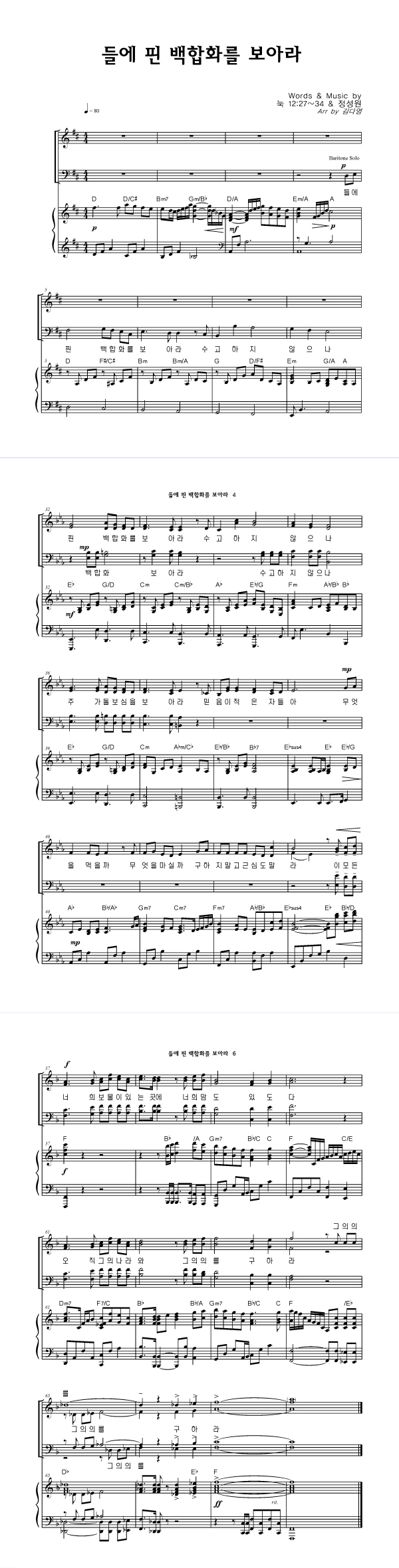 | 들에 핀 백합화를 보아라 | 성가 4부 + 피아노 반주 |
