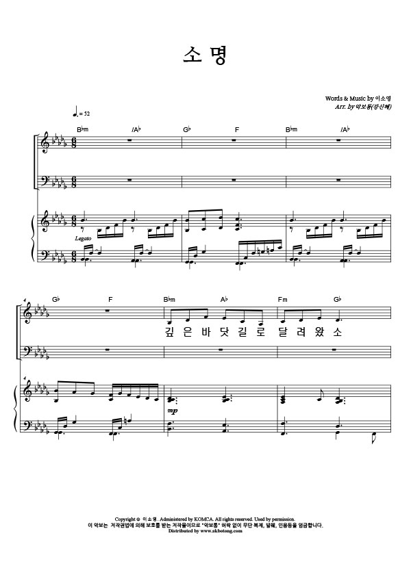 | 소명 큰글씨 | 성가 3부 + 피아노 반주 |