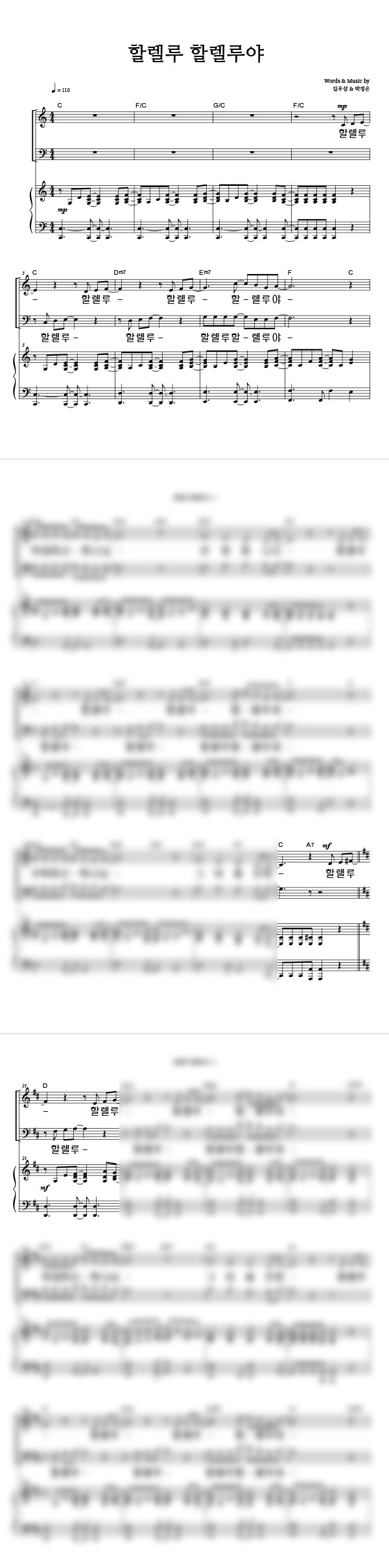 '할렐루 할렐루야' 의 다른 악보형식