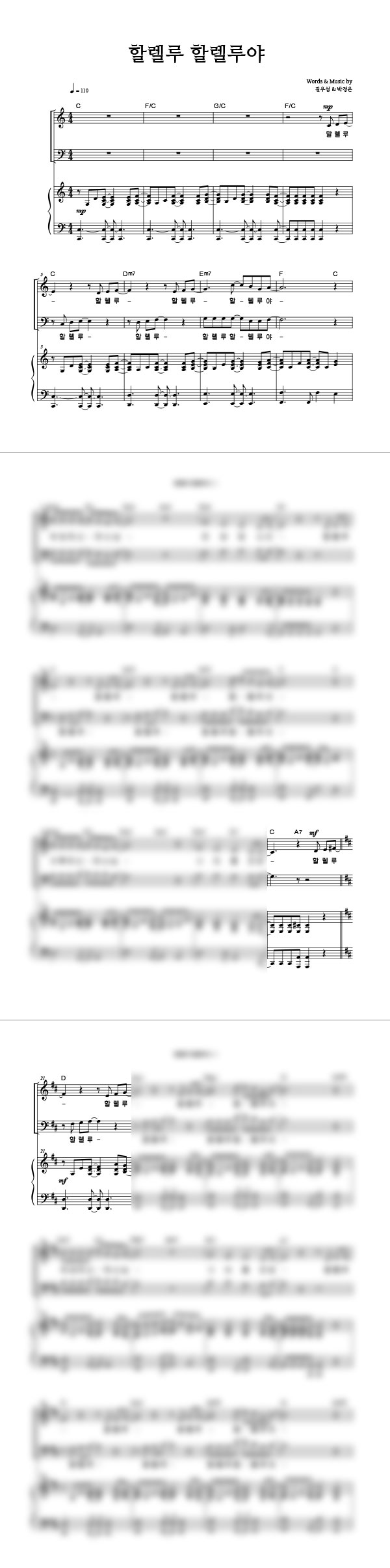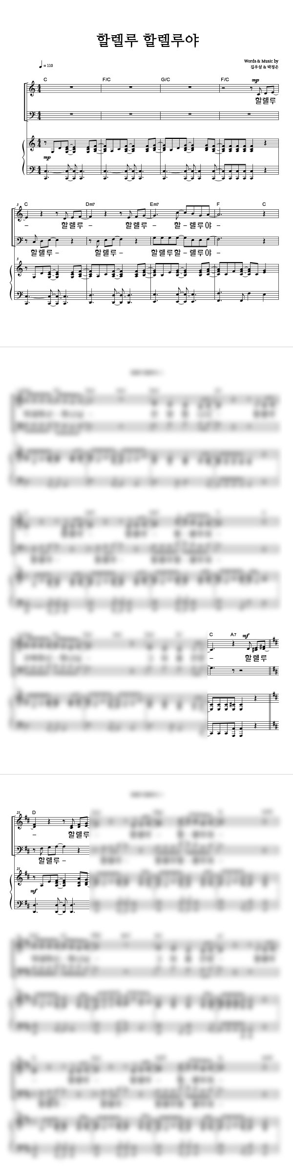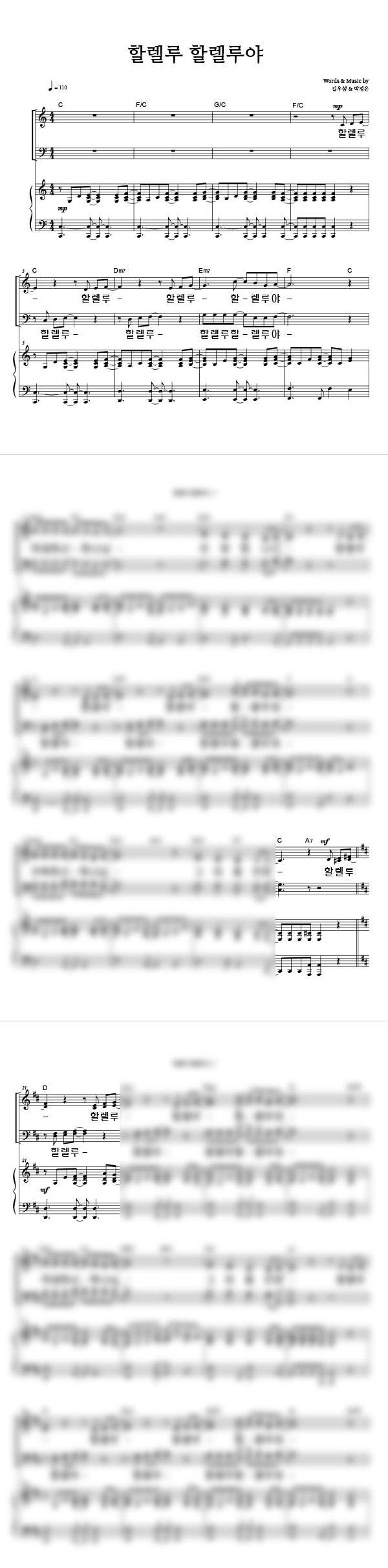 '할렐루 할렐루야' 의 다른 악보형식
