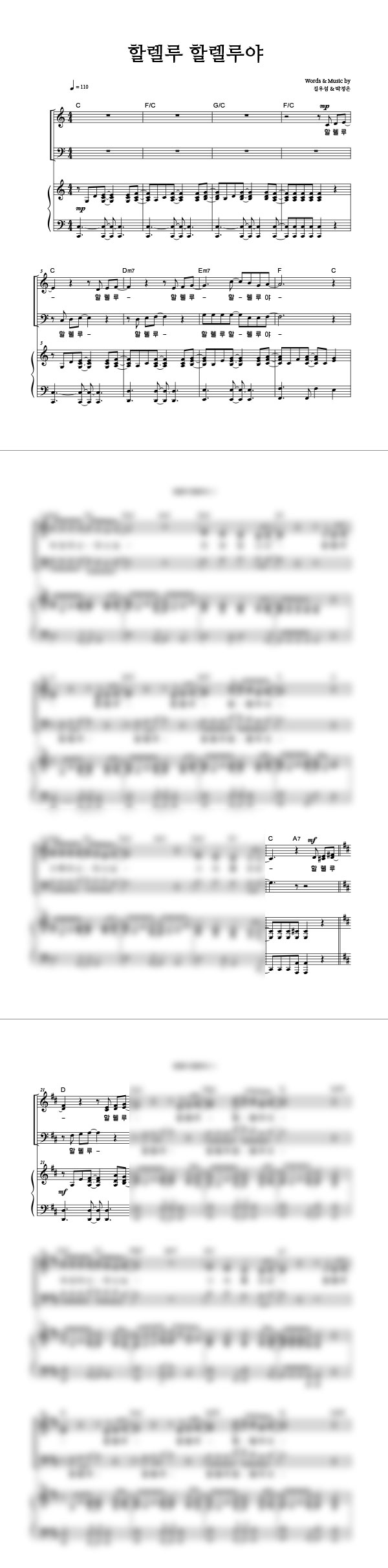 '할렐루 할렐루야' 의 다른 악보형식