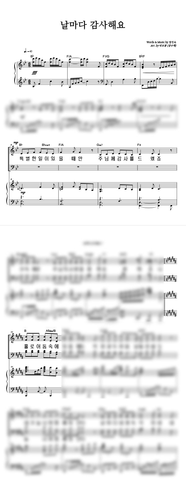 | 날마다 감사해요 | 성가 2부 + 피아노 반주 |
