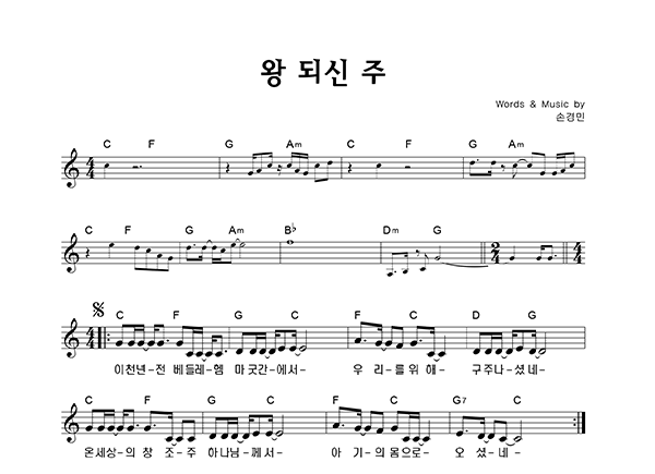 | 왕 되신 주 | 성가 2부 + 피아노 반주 |