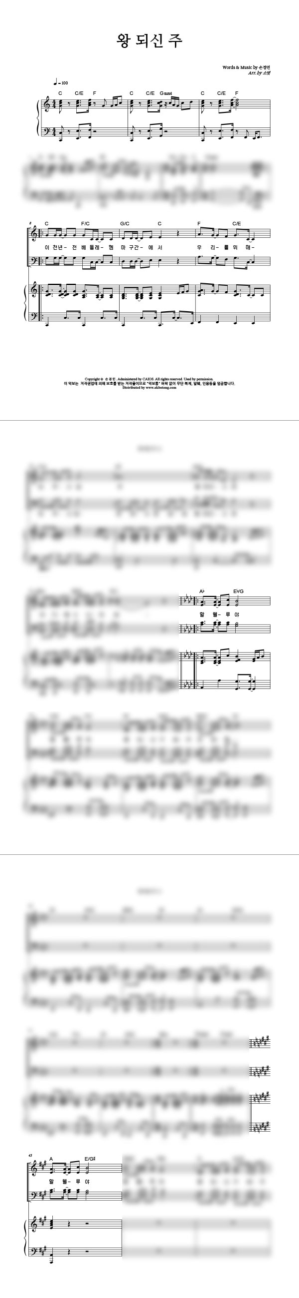 | 왕 되신 주 | 성가 4부 + 피아노 반주 |