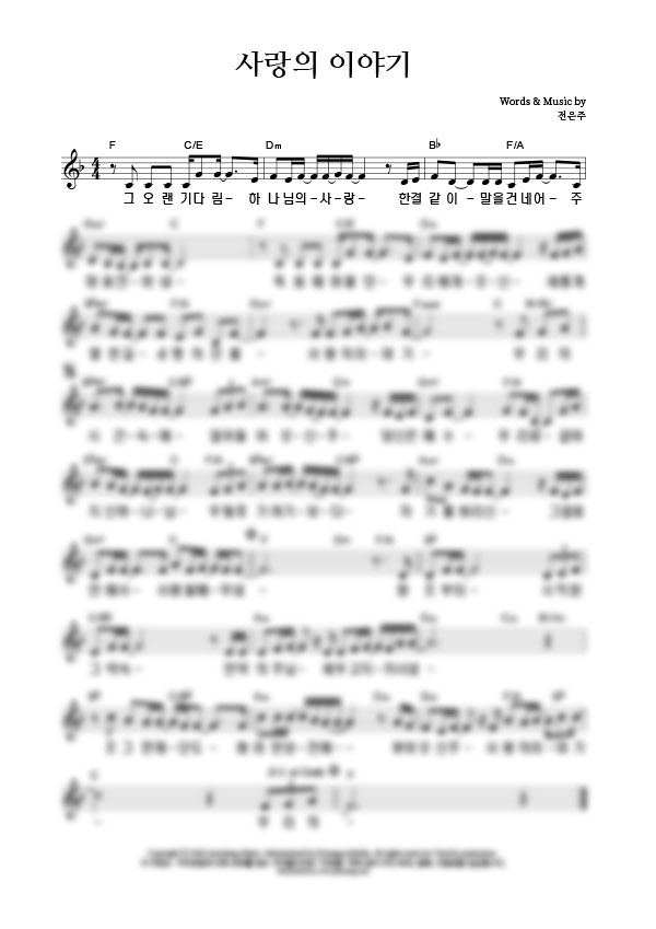 '사랑의 이야기 (어노인팅 예배캠프 2021 주제곡)' 의 다른 악보