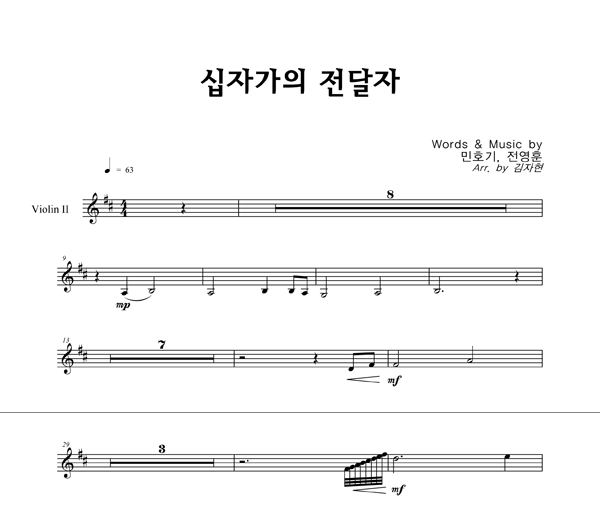 '십자가의 전달자' 의 다른 악보형식