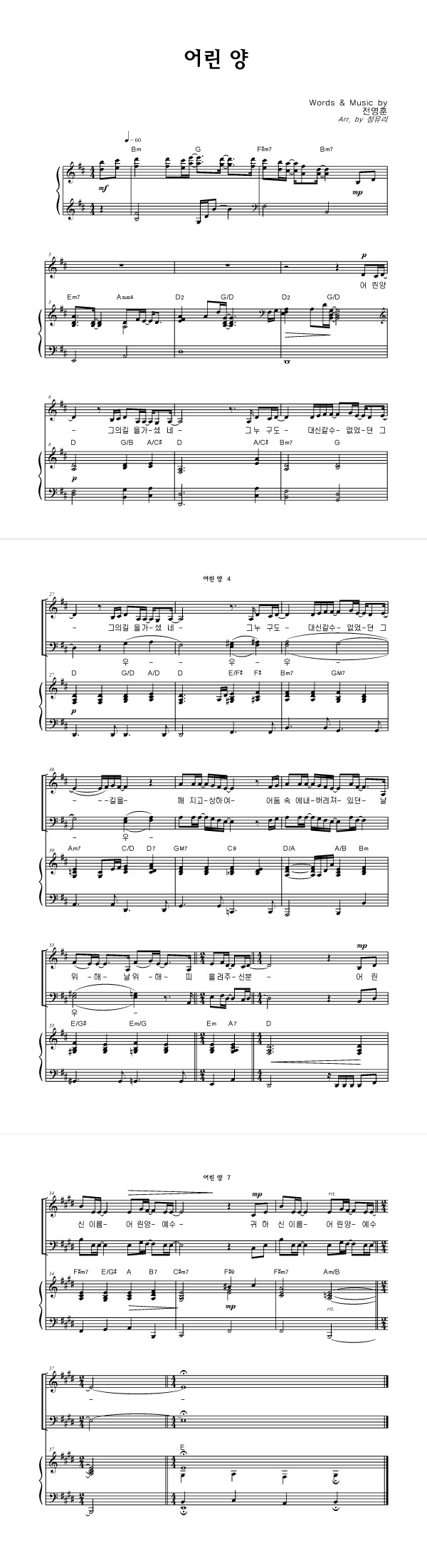 | 어린 양 | 성가 4부 + 피아노 반주 |