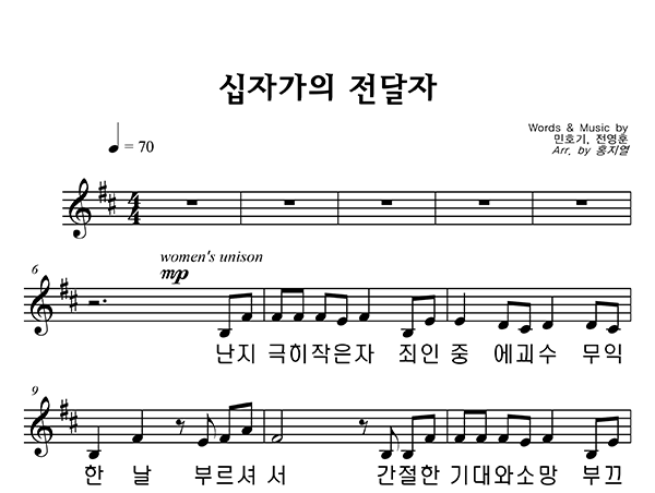 | 십자가의 전달자 | 성가 2부 + 피아노 반주 |