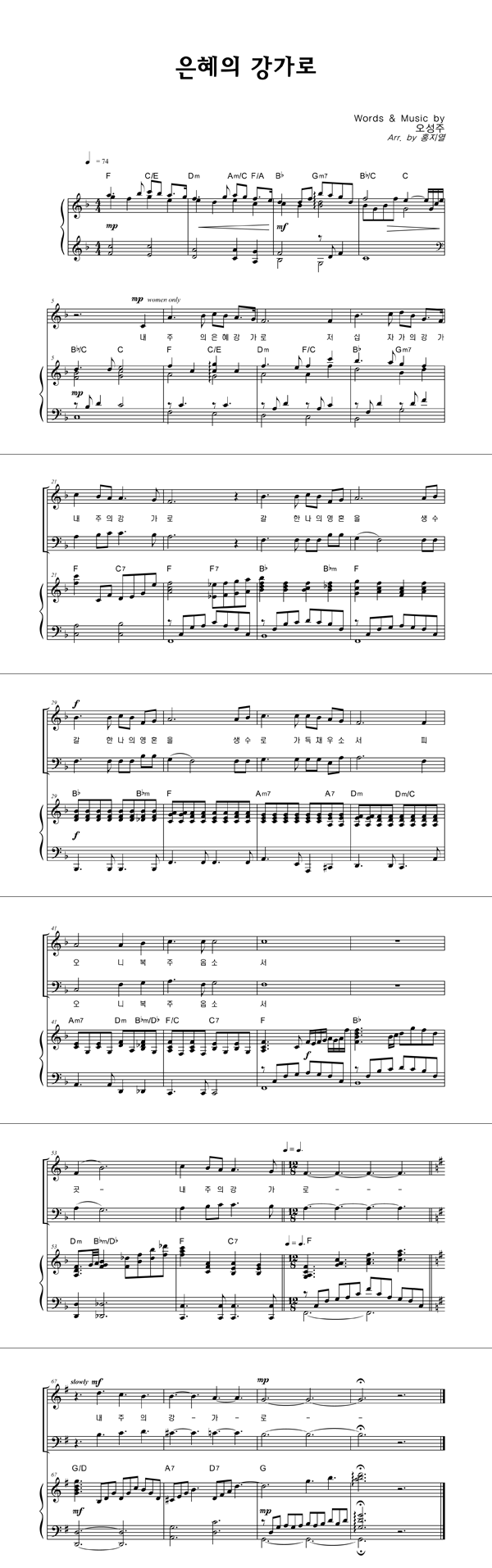 | 은혜의 강가로 | 성가 2부 + 피아노 반주 |