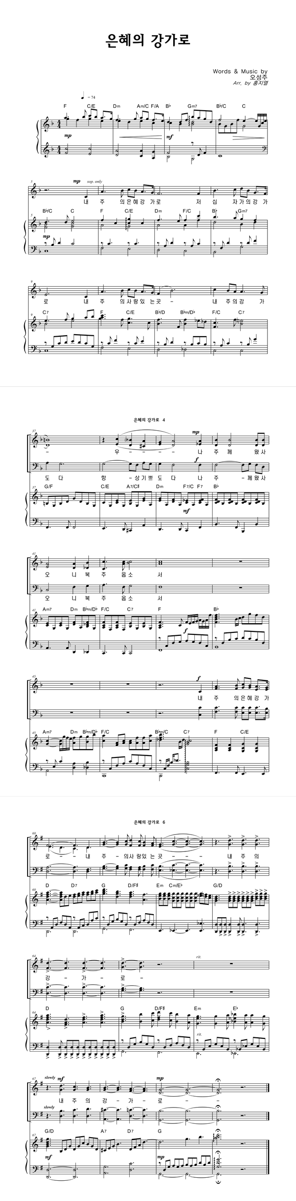 | 은혜의 강가로 | 성가 4부 + 피아노 반주 |