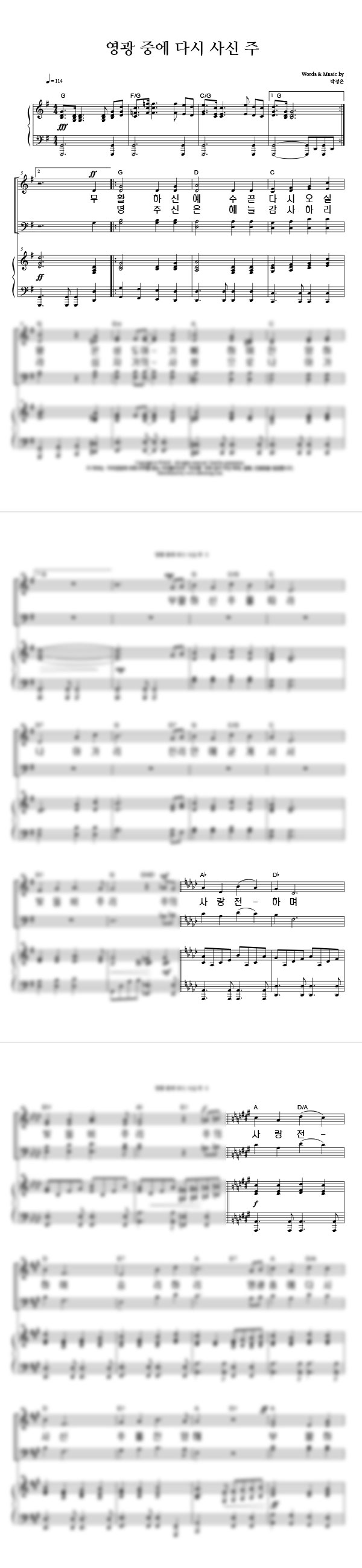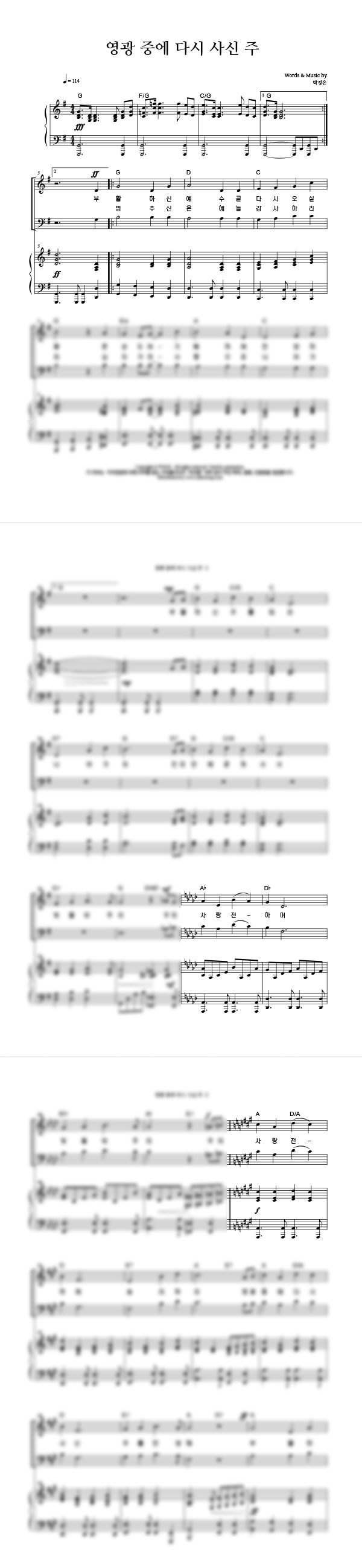 '영광 중에 다시 사신 주' 의 다른 악보형식