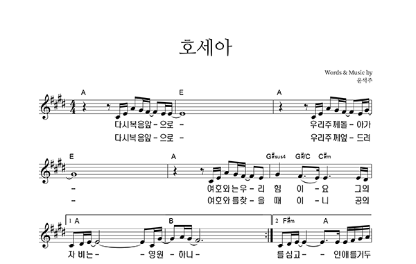 | 호세아 | 성가 2부 + 피아노 반주 |