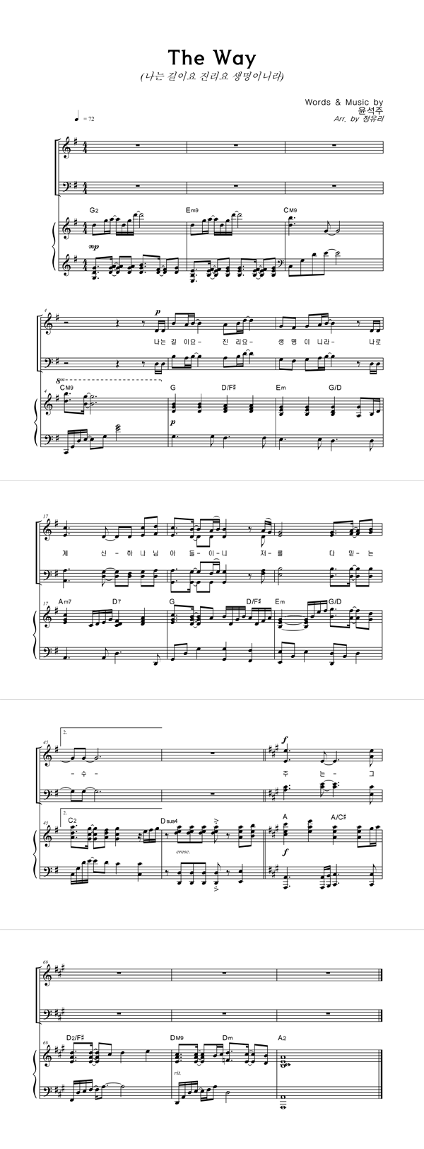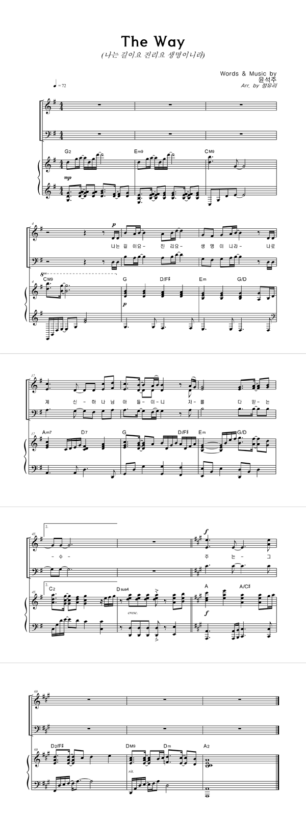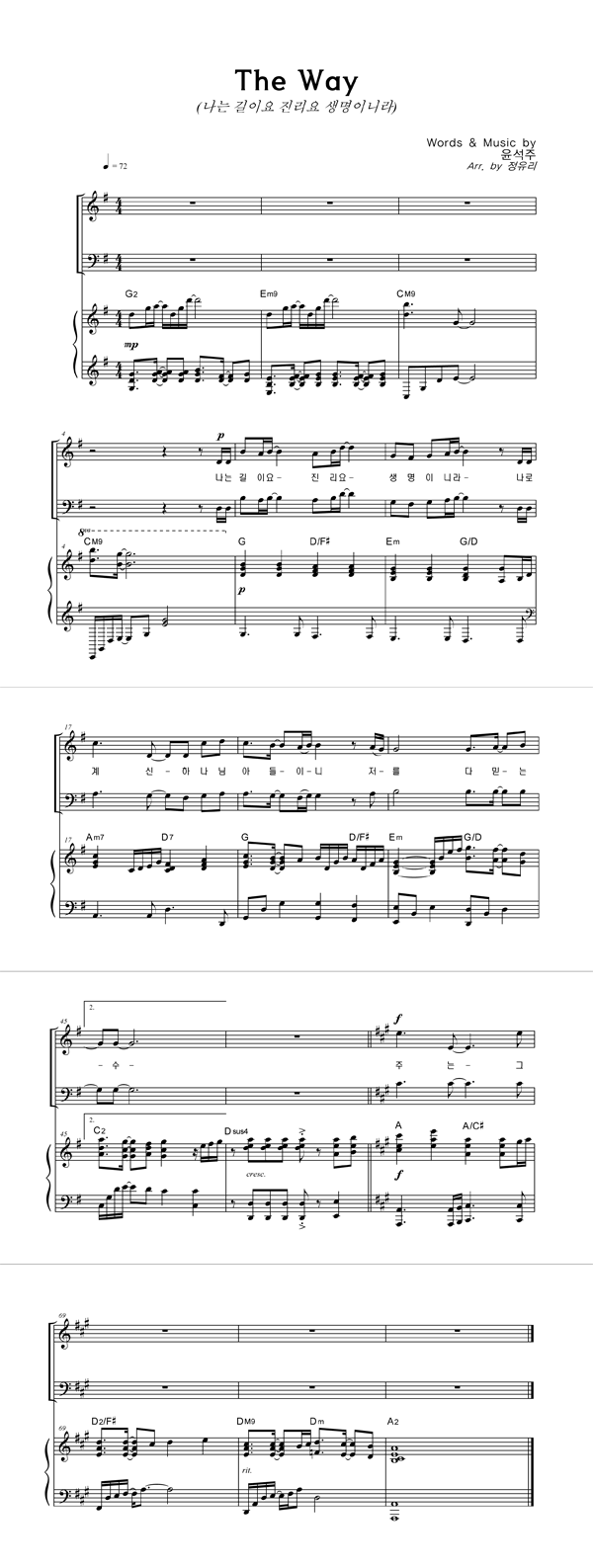 | The Way 큰글씨 | 성가 4부 + 피아노 반주 |