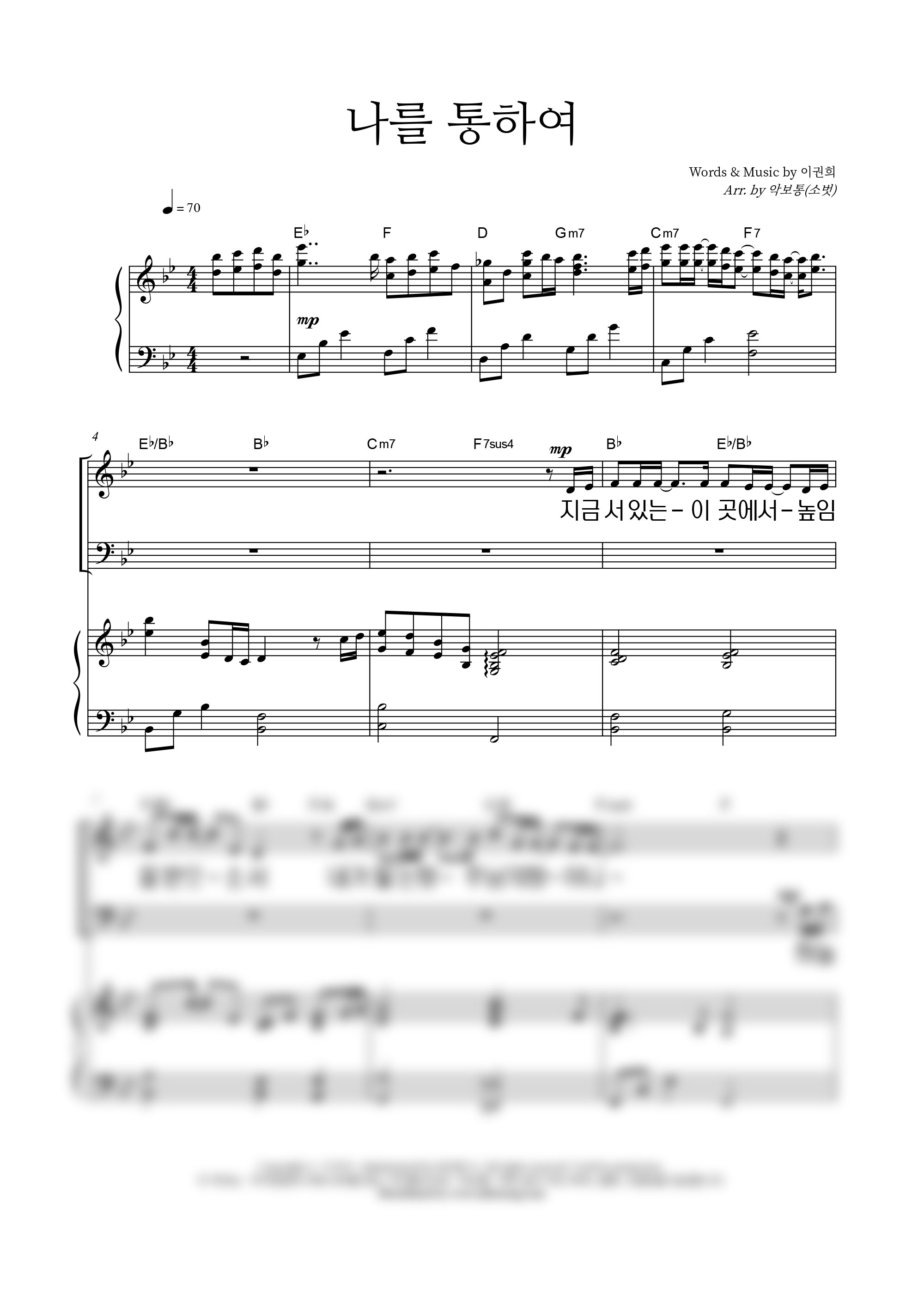 | 나를 통하여 큰글씨 | 성가 4부 + 피아노 반주 |