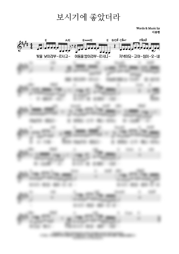 | 보시기에 좋았더라 큰글씨 | 성가 4부 + 피아노 반주 |