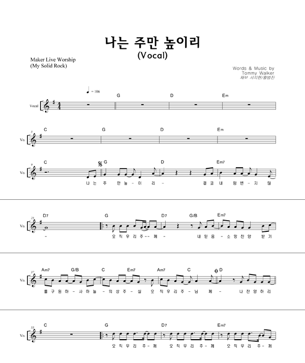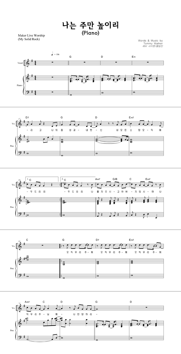 '나는 주만 높이리' 의 다른 악보형식