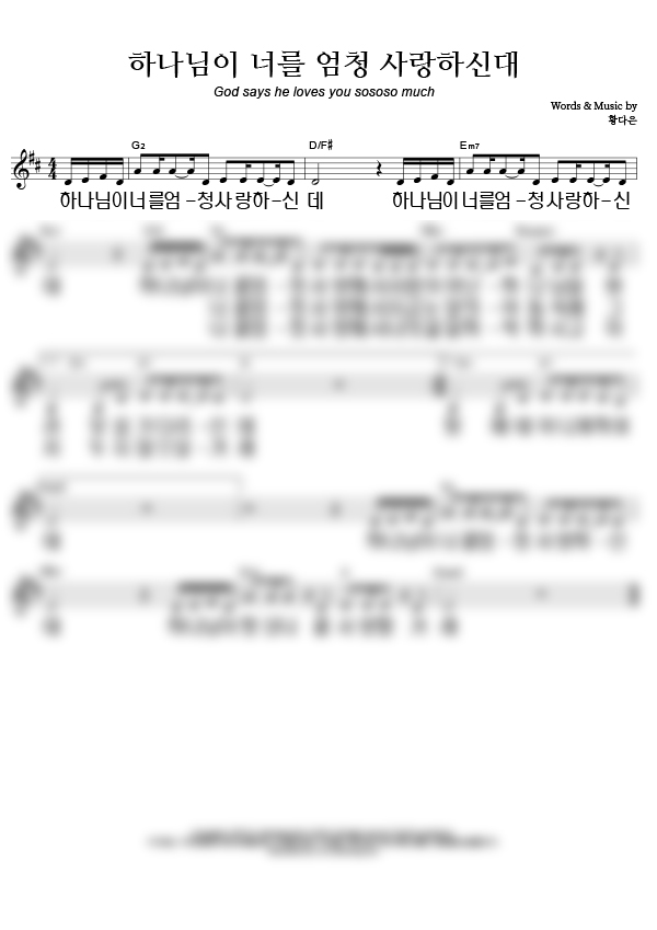 '하나님이 너를 엄청 사랑하신대' 의 다른 악보