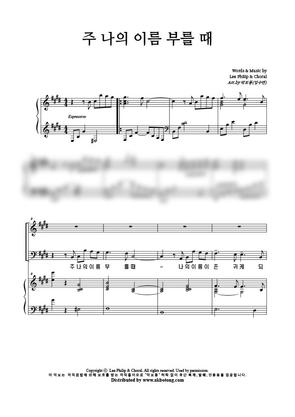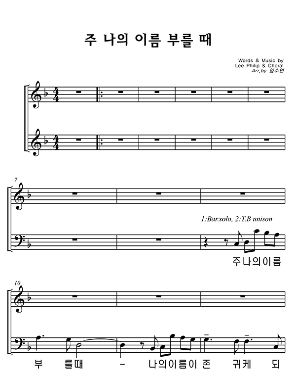 '주 나의 이름 부를 때' 의 다른 악보형식