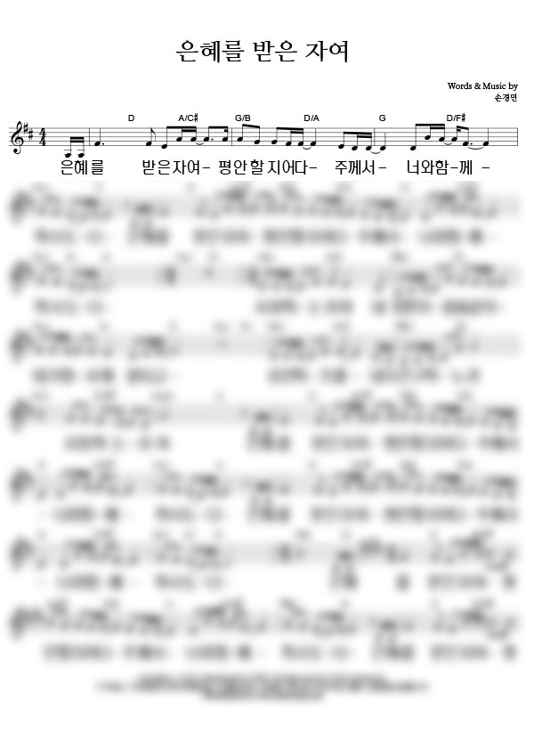 | 은혜를 받은 자여 | 성가 2부 + 피아노 반주 |