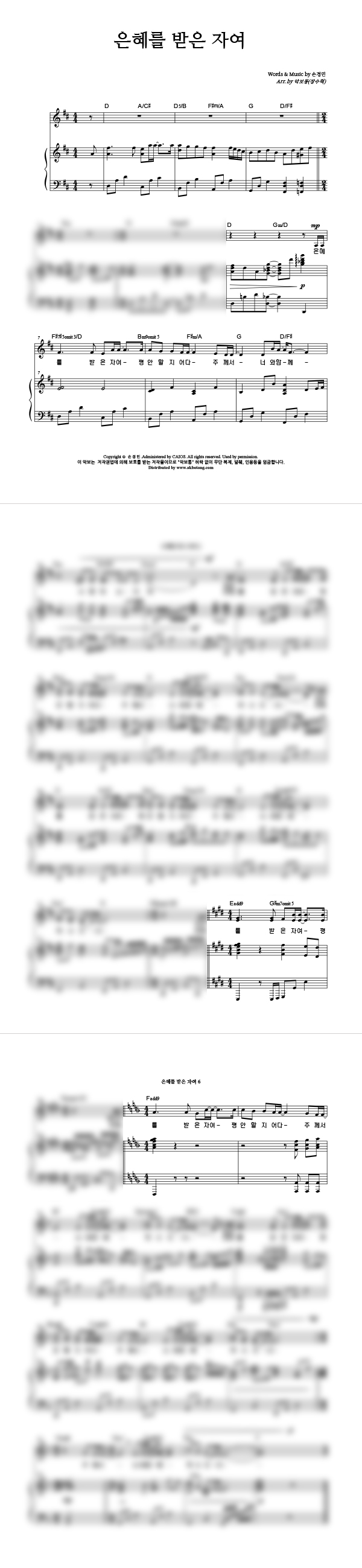 | 은혜를 받은 자여 | 성가 4부 + 피아노 반주 |