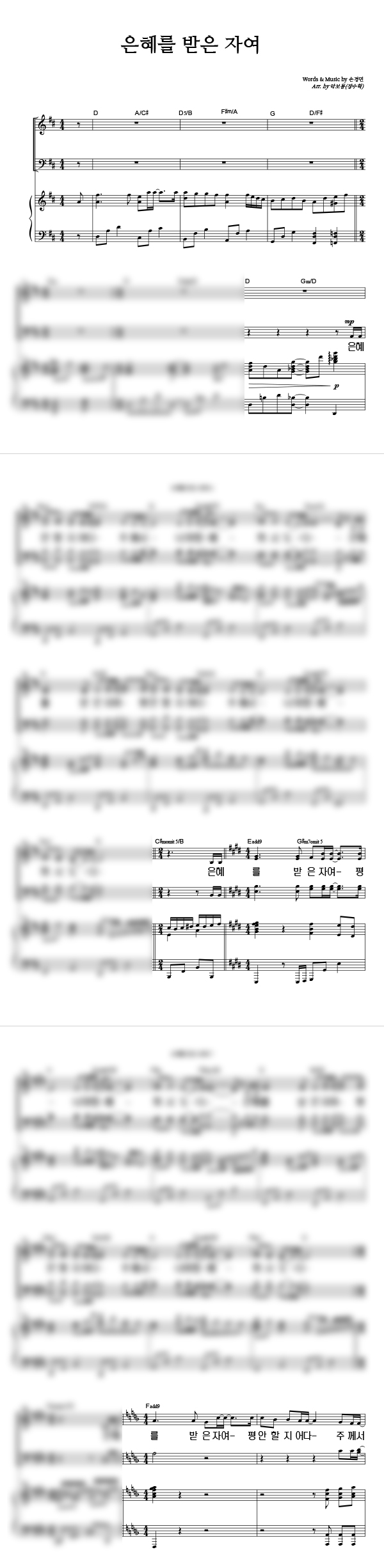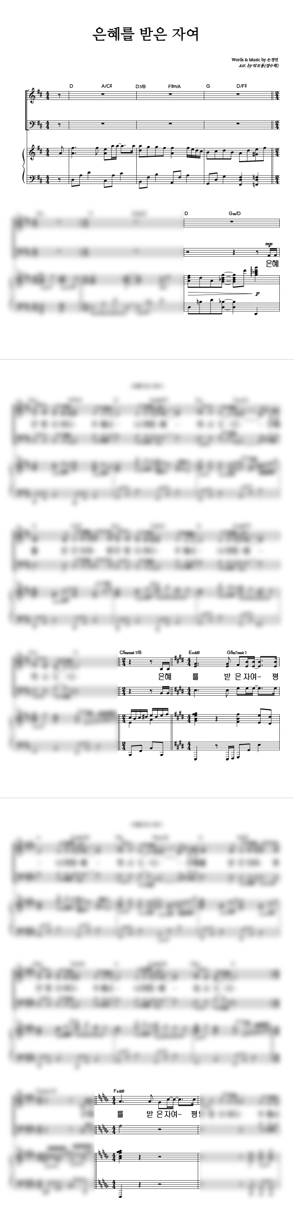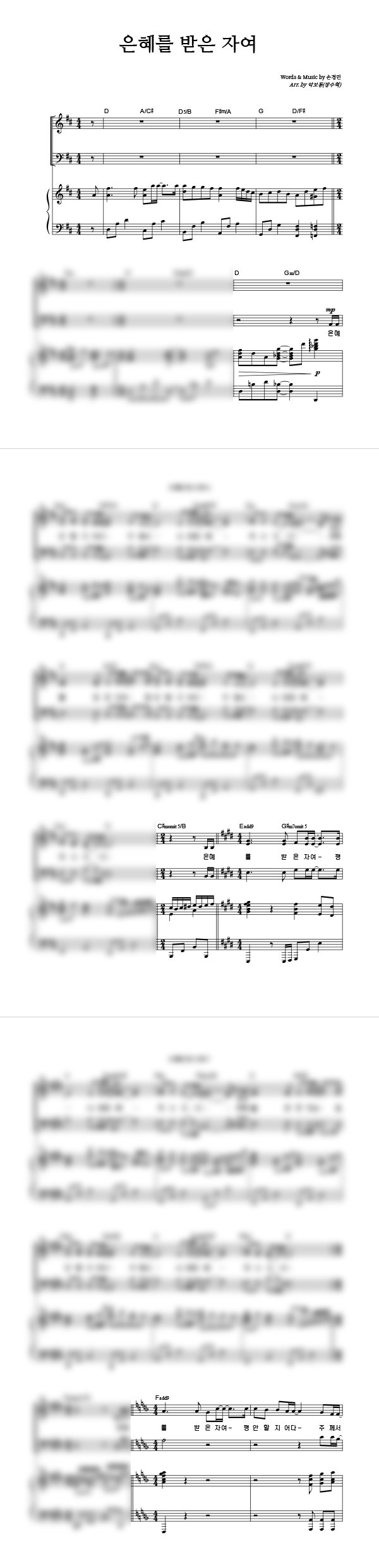 | 은혜를 받은 자여 | 성가 3부 + 피아노 반주 |