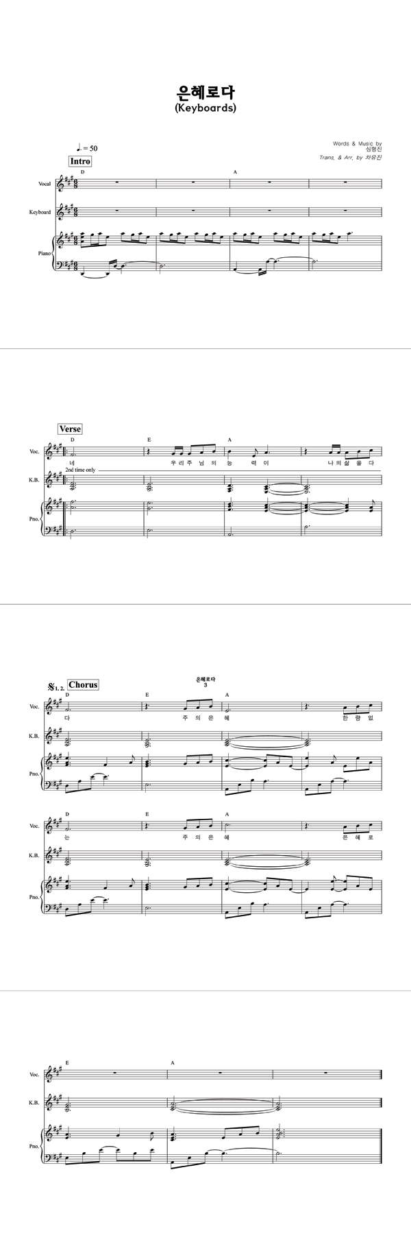 | 나의 찬양 멈출 수 없네 | 성가 3부 + 피아노 반주 |