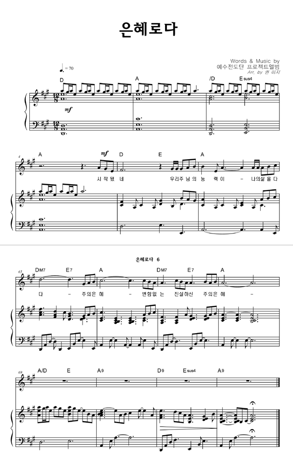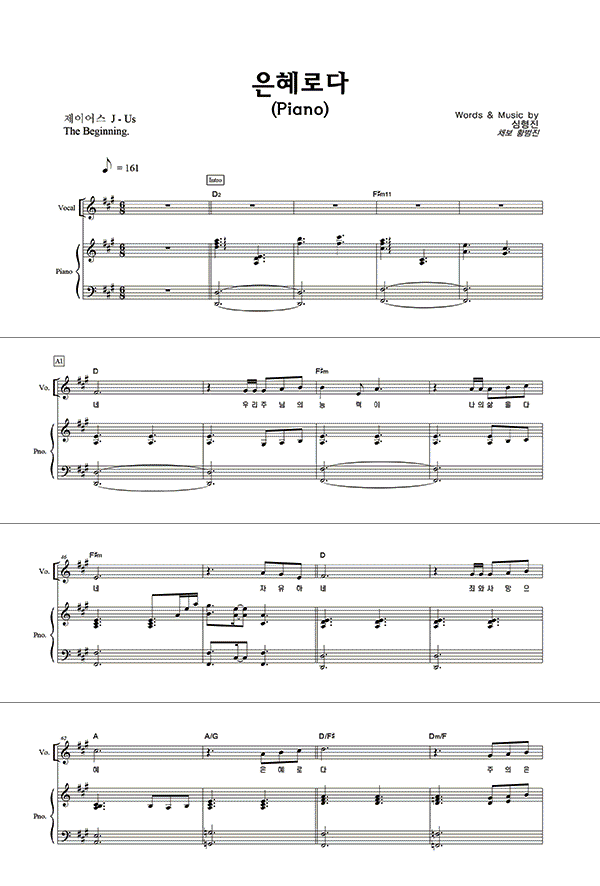 | 나의 찬양 멈출 수 없네 | 성가 2부 + 피아노 반주 |