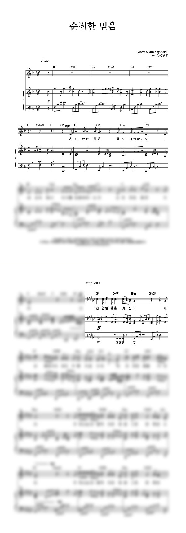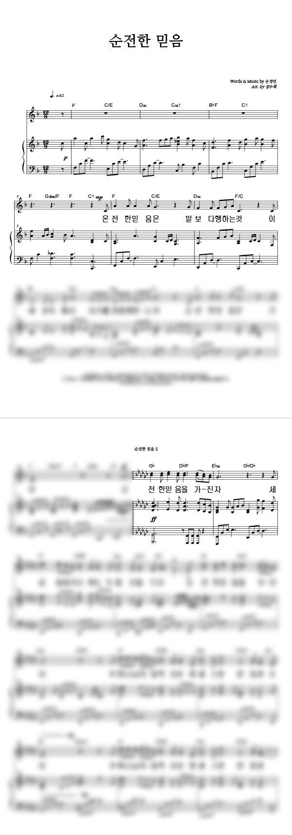 | 순전한 믿음 | 성가 2부 + 피아노 반주 |