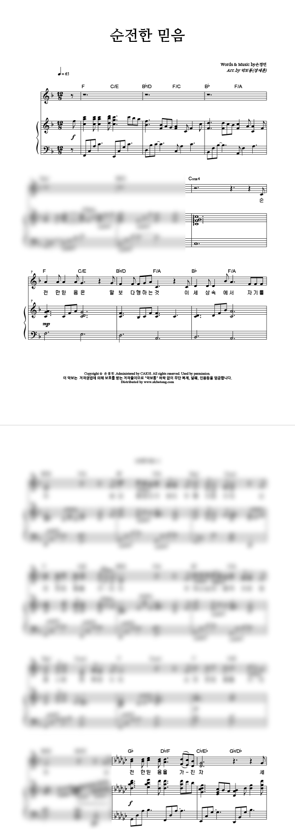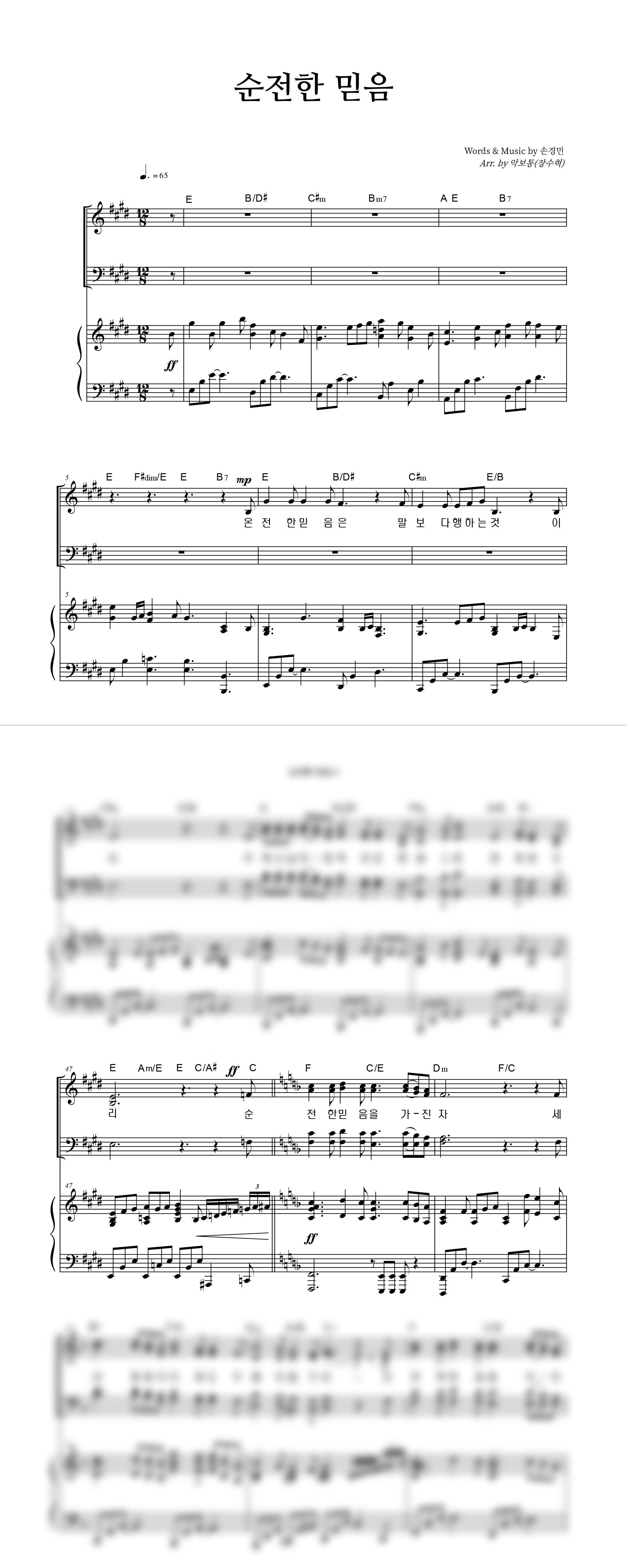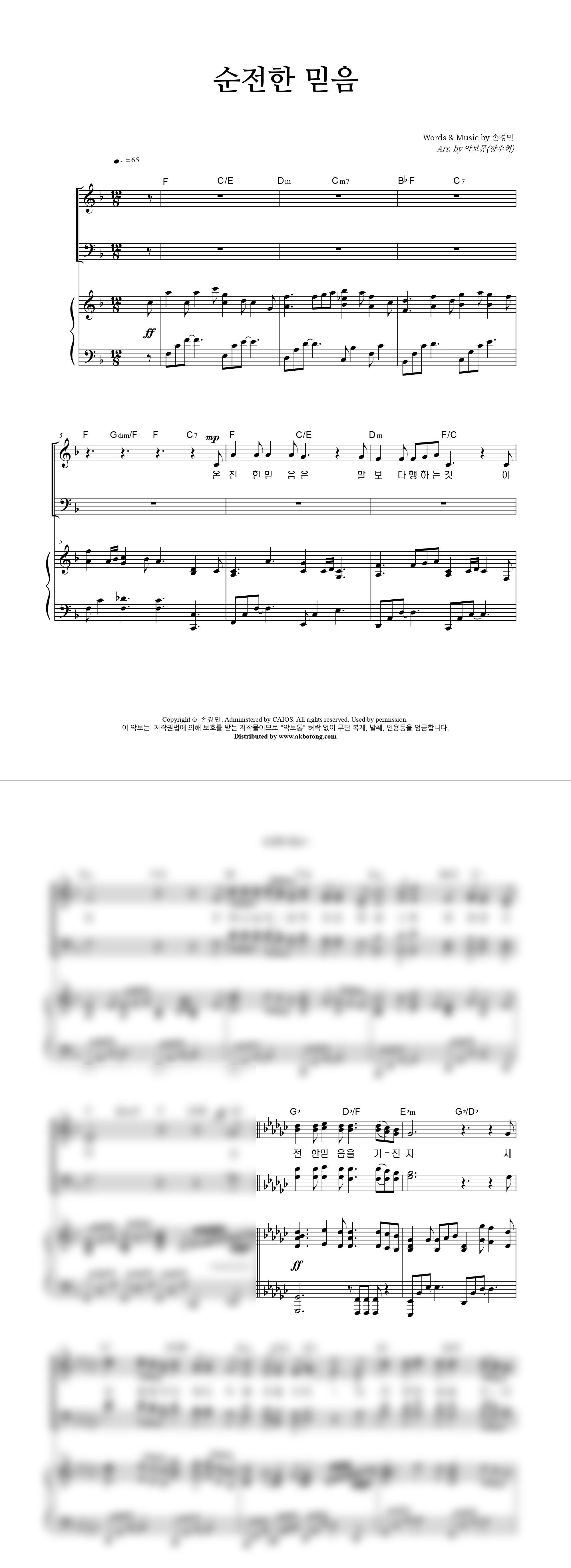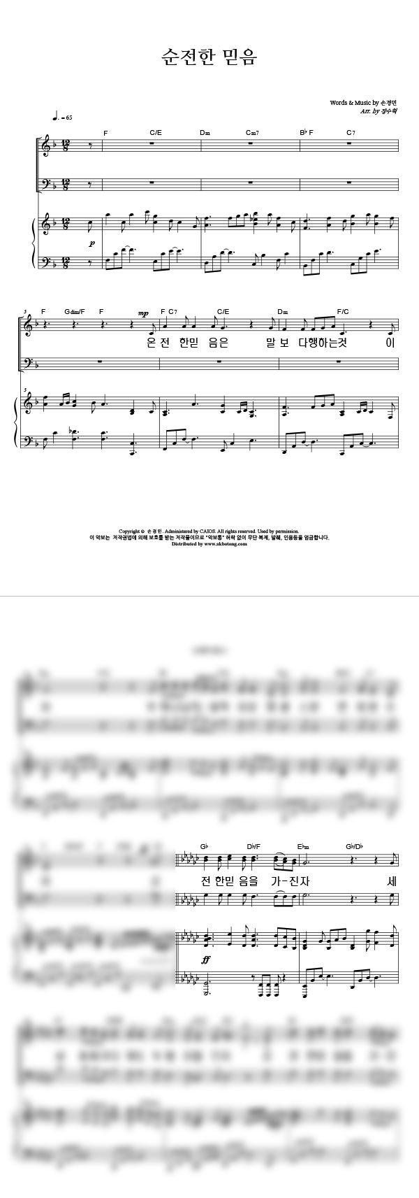 | 순전한 믿음 | 성가 3부 + 피아노 반주 |
