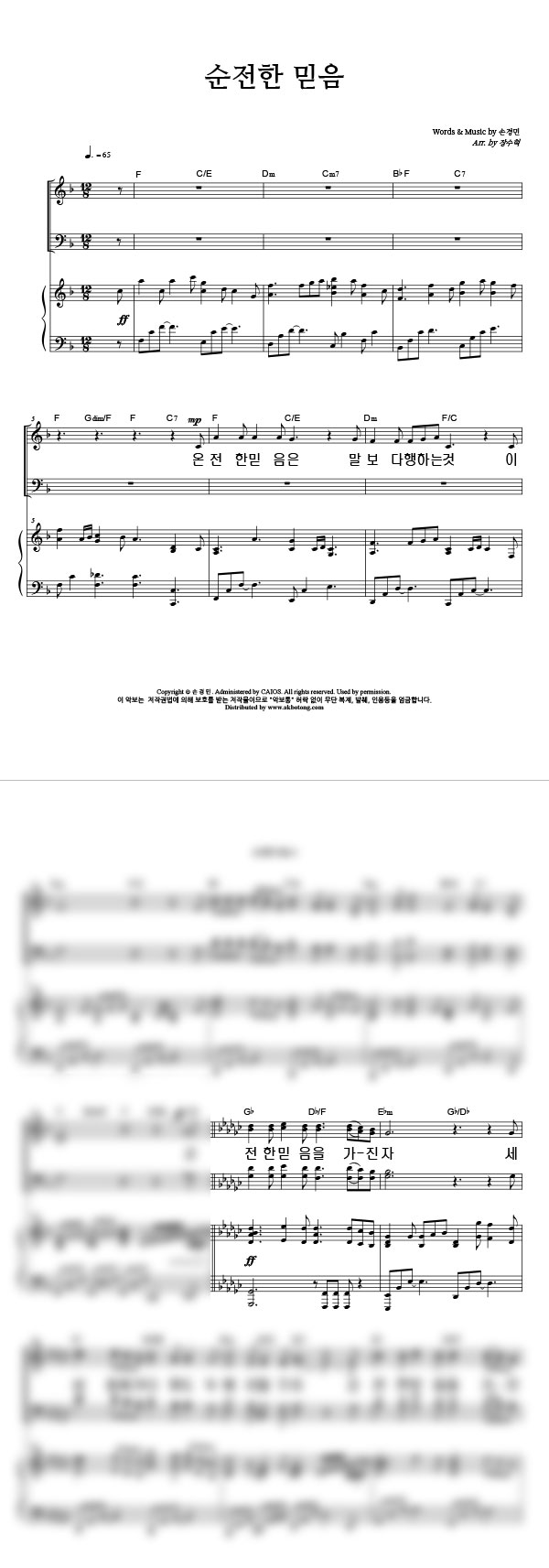 | 순전한 믿음 | 성가 4부 + 피아노 반주 |