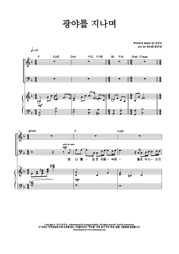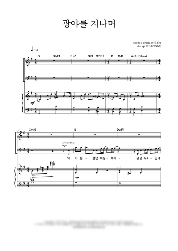 | 광야를 지나며 | 성가 3부 + 피아노 반주 |