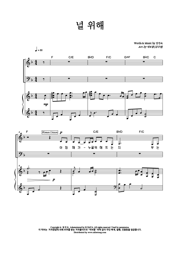 | 널 위해 | 성가 3부 + 피아노 반주 |