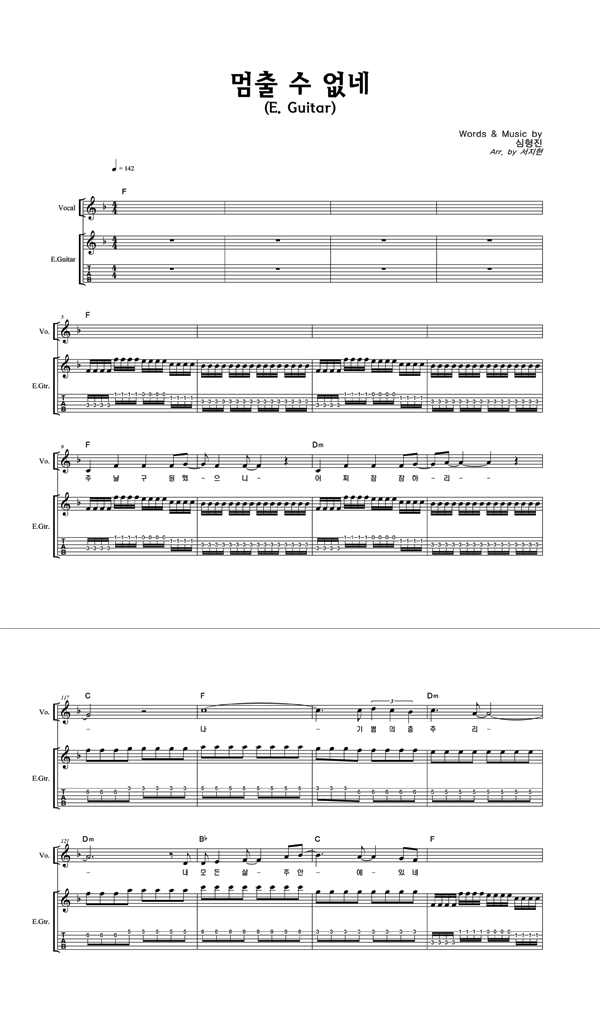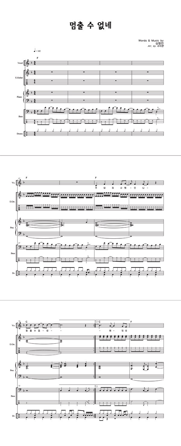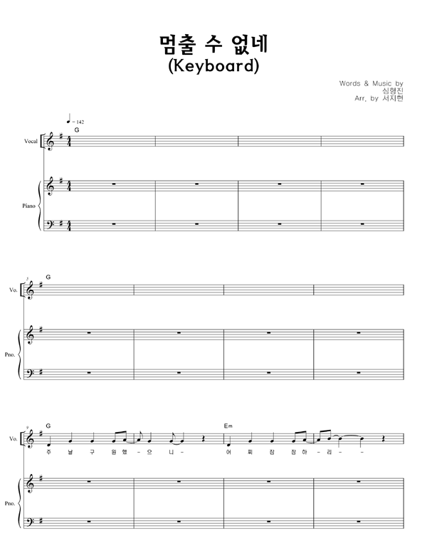 '멈출 수 없네' 의 다른 악보형식