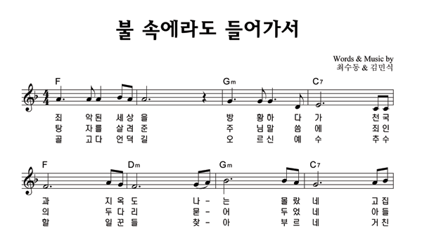 '불 속에라도 들어가서' 의 다른 악보형식
